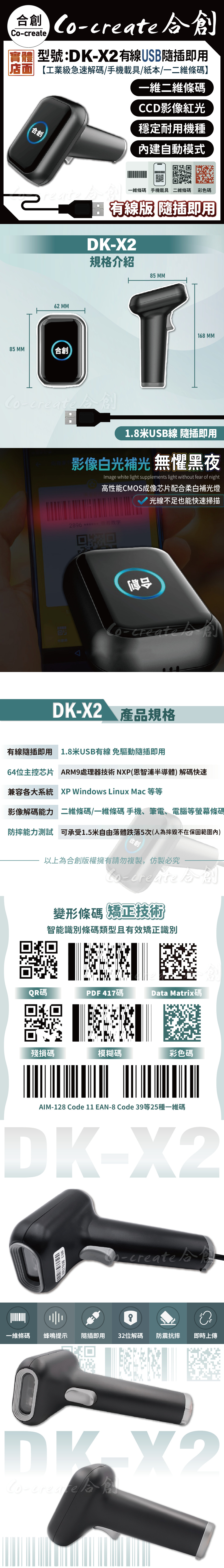 【型號: DK-X2 有線款 USB隨插即用/一維/二維 工業級急速版解碼】