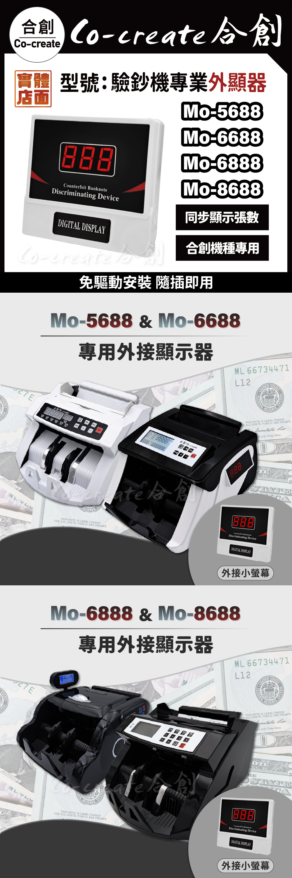• Mo-5688.6688.6888.8688 專用外接顯示器|數鈔機 點鈔機 驗鈔機 外顯