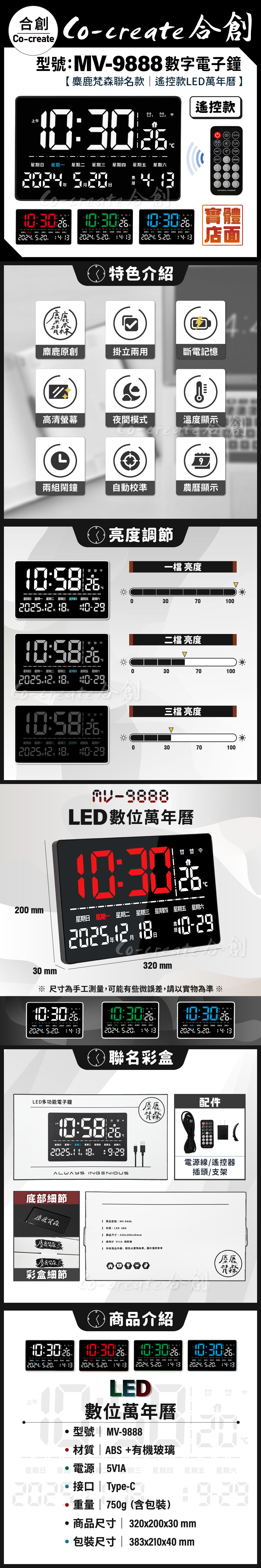 首頁 > 產品資訊 > 遙控款 MV-9888 大屏數位 萬年曆電子鐘 時鐘 萬年曆 掛鐘 立鐘 多功能時鐘 鬧鐘